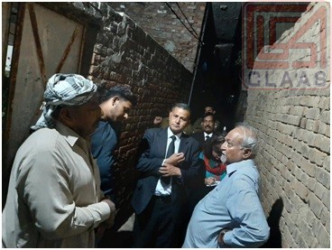 As the door was locked so the CLAAS team members Mr. Sohail Habel and lawyer Mr. Nasir Anjum put a ladder and jumped into the house with the help of habitant of the vicinity and two police officials. CLAAS team members also took pictures of the burnt house and they said, there are two rooms and a room which is full with domestic belongings is saved and other room which is like a kitchen burnt, in which there are some woods and other old things were laying. Francis, s neighbor Kaleem Masih said that Francis didn’t use to come to this house because he is living at some other place they further said that Francis, s cousin Allah Rakha is not honest with Francis and want to grab this property by frightening him that this place is not safe for him. But all Christian and Muslims are living there peacefully. Another woman Nasira Bibi w/o Sarwar Masih from neighborhood informed CLAAS that house caught fire due to short circuit.